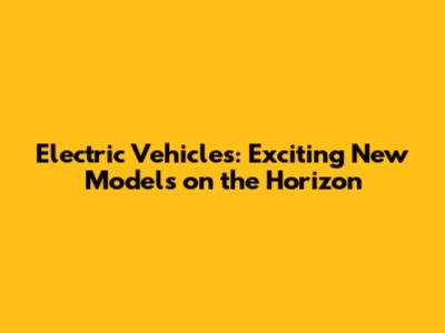 Electric Vehicles: Exciting New Models On The Horizon