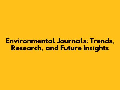 Environmental Journals: Trends, Research, And Future Insights