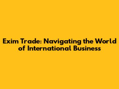 Exim Trade: Your Guide To Global Business
