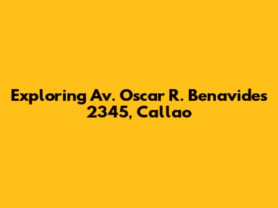 Hey guys! Ever wondered about the hidden gems along Av. Oscar R. Benavides 2345 in Callao? Well, buckle up, because we're about to dive deep into what makes this spot so special. This isn't just a street address; it's a gateway to understanding a slice of Callao's vibrant culture, history, and daily life. We'll be exploring everything from the local businesses that give the area its pulse to the historical significance that shapes its identity. Get ready to uncover the stories behind the buildings, the people, and the experiences that make this address a unique destination. Let's get started on this exciting journey to discover the heart and soul of Av. Oscar R. Benavides 2345, Callao.