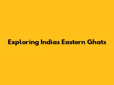 Exploring India's Eastern Ghats