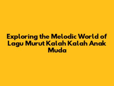 Hey guys! Let's dive into something super cool today: 'Lagu Murut Kalah Kalah Anak Muda'. If you're into music, especially the kind that makes you want to tap your feet and maybe learn a few new words, you're in the right place. We're going to explore this awesome song, its cultural roots, and why it's such a hit among the young folks and the not-so-young folks alike. So, buckle up, because we're about to embark on a musical journey!