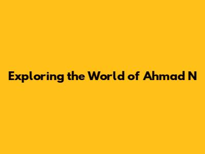 Exploring The World Of Ahmad N