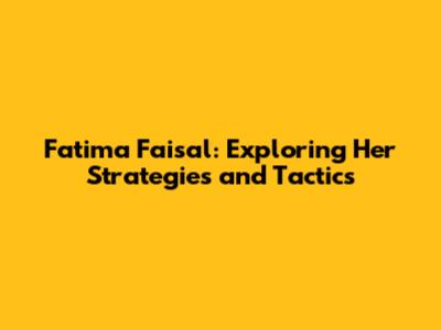 Fatima Faisal: Exploring Her Strategies And Tactics