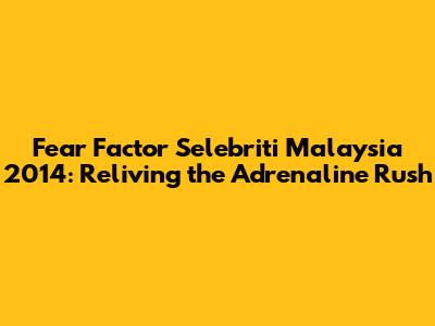 Hey guys, remember the good ol' days of Fear Factor Selebriti Malaysia 2014? This show was a total rollercoaster of emotions, right? From the heart-stopping challenges to the celebrity meltdowns, it had everything! Let's take a trip down memory lane and revisit this iconic season. We're talking about the daring stunts, the celebrity contestants, and all the crazy moments that made this show a must-watch back in the day. Get ready to relive the excitement, because we're diving deep into the thrills and spills of Fear Factor Selebriti Malaysia 2014!