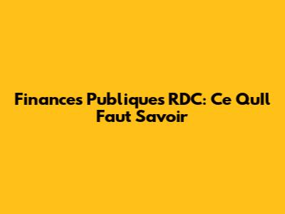 Finances Publiques RDC: Ce Qu'il Faut Savoir