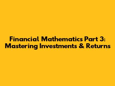 Financial Mathematics Part 3: Mastering Investments & Returns