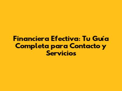 Financiera Efectiva: Contacto, Trámites Y Todo Lo Que Necesitas