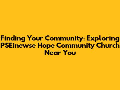 Find Hope: Your Guide To PSEinewse Community Church
