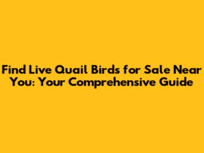 Where to Find Live Quail Birds for Sale