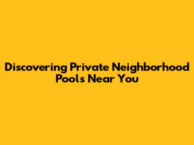 Find Private Neighborhood Pools Close By