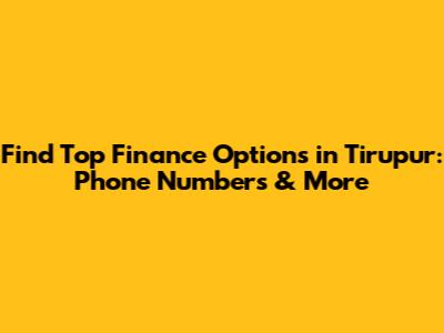 Are you looking for the best finance options in Tirupur? Finding the right financial services can be a game-changer, whether you're planning to expand your business, invest in new opportunities, or simply manage your personal finances more effectively. Tirupur, known as the knitwear capital of India, has a thriving economy and a growing need for diverse financial solutions. In this comprehensive guide, we'll explore how to find the top finance options available in Tirupur, with a special focus on providing you with the essential phone numbers and contact information you need to get started. So, if you're ready to take control of your financial future in Tirupur, keep reading to discover the resources and strategies that can help you achieve your goals.