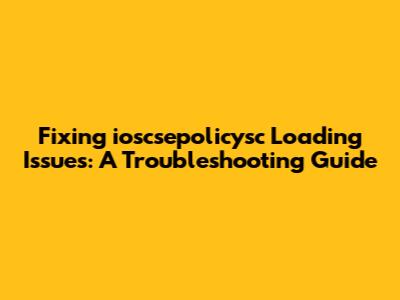 Fixing 'ioscsepolicysc' Loading Issues: A Troubleshooting Guide