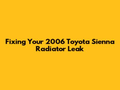 Understanding Radiator Leaks in Your 2006 Toyota Sienna