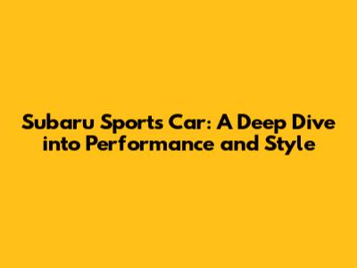Subaru Sports Car: A Deep Dive into Performance and Style
