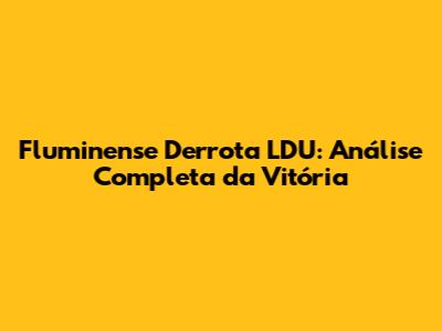 Fluminense Derrota LDU: Análise Completa Da Vitória