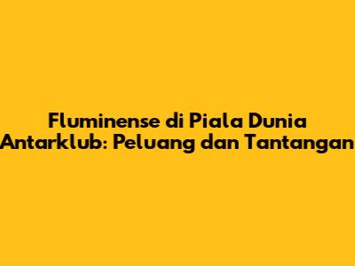 Fluminense Di Piala Dunia Antarklub: Peluang Dan Tantangan