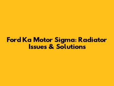 Ford Ka Motor Sigma: Radiator Issues & Solutions
