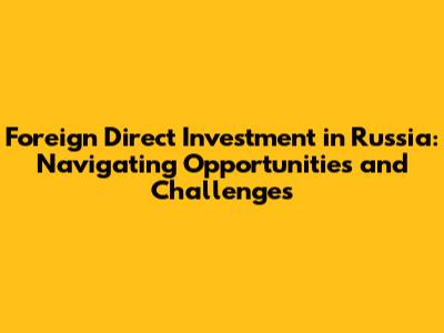 Foreign Direct Investment In Russia: Opportunities And Challenges
