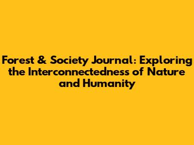 Forest & Society Journal: All You Need To Know