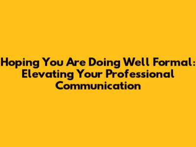 In the realm of professional correspondence, the opening line sets the tone for the entire message. While "Hoping you are doing well" is a common and generally acceptable greeting, there are numerous formal alternatives that can add a touch of sophistication and professionalism to your emails and letters. These alternatives not only convey your well-wishes but also demonstrate your attention to detail and command of language. Guys, let's dive into some of the best ways to formally express your concern for the recipient's well-being.