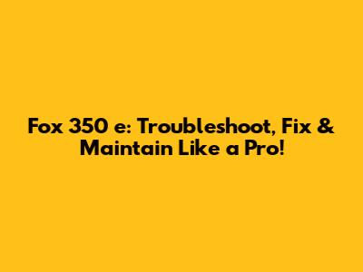Fox 350 E: Troubleshoot, Fix & Maintain Like A Pro!