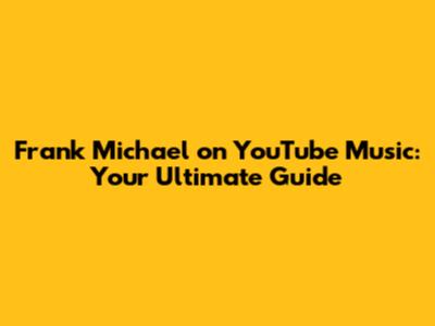 Frank Michael On YouTube Music: Your Ultimate Guide