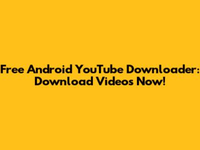 Free Android YouTube Downloader: Download Videos Now!