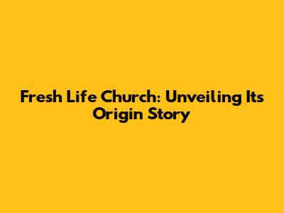Fresh Life Church: Unveiling Its Origin Story