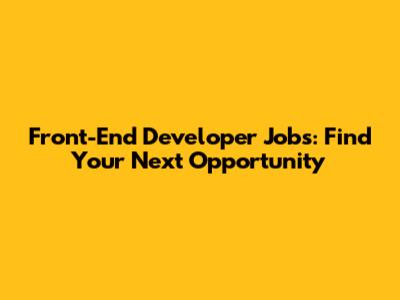 Front-End Developer Jobs: Find Your Next Opportunity