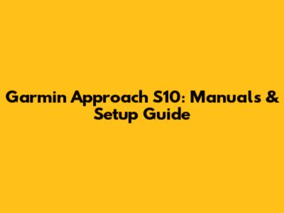 Garmin Approach S10: Manuals & Setup Guide