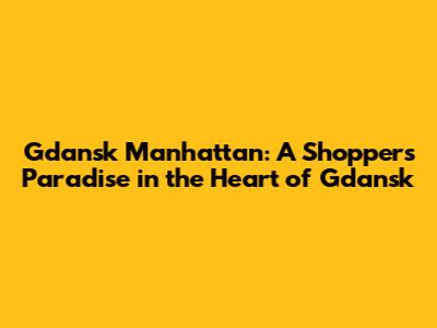 Gdansk Manhattan: Your Ultimate Shopping & Entertainment Hub