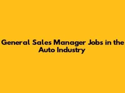 General Sales Manager Jobs In The Auto Industry