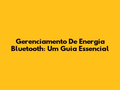 Gerenciamento De Energia Bluetooth: Um Guia Essencial