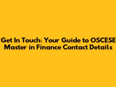 Get In Touch: OSCESE Master In Finance Contact Details