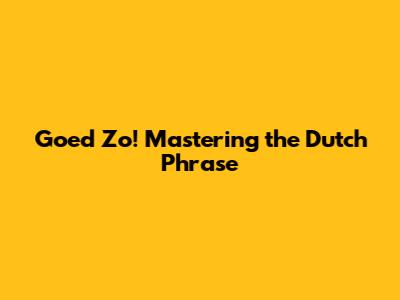Goed Zo! Mastering The Dutch Phrase