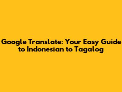 Google Translate: Indonesian To Tagalog Made Easy