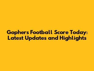 Gophers Football Score Today: Latest Updates And Highlights