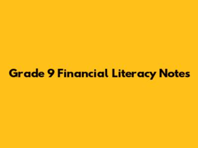 Grade 9 Financial Literacy Notes