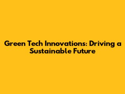 Green Tech Innovations: Driving A Sustainable Future