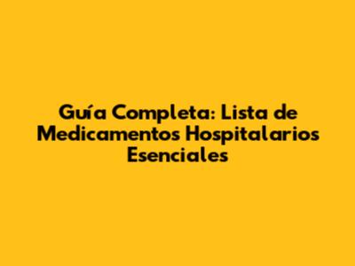 Guía Completa: Lista De Medicamentos Hospitalarios Esenciales