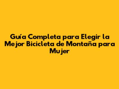 Guía Completa Para Elegir La Mejor Bicicleta De Montaña Para Mujer