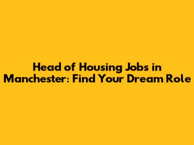 Head Of Housing Jobs In Manchester: Find Your Dream Role