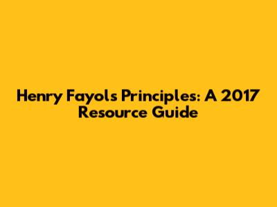 Henry Fayol's Principles: A 2017 Resource Guide