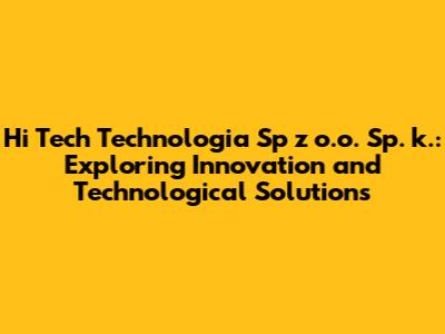 Let's dive deep into Hi Tech Technologia Sp z o.o. Sp. k. This article will provide a comprehensive overview of what the company does, its key offerings, and its impact on the tech landscape. We'll explore its innovations and solutions, all while keeping it casual and easy to understand. So, buckle up, tech enthusiasts!