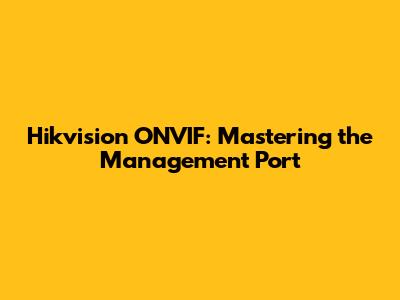 Hikvision ONVIF: Mastering The Management Port