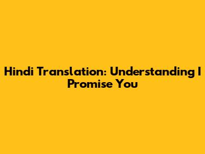 Hindi Translation: Understanding 'I Promise You'