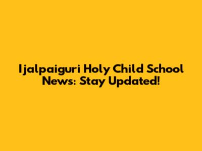 Holy Child School, Ijalpaiguri: Latest News & Updates