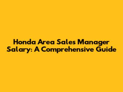 Honda Area Sales Manager Salary: What You Need To Know