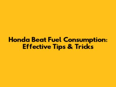 Honda Beat Fuel Consumption: Effective Tips & Tricks